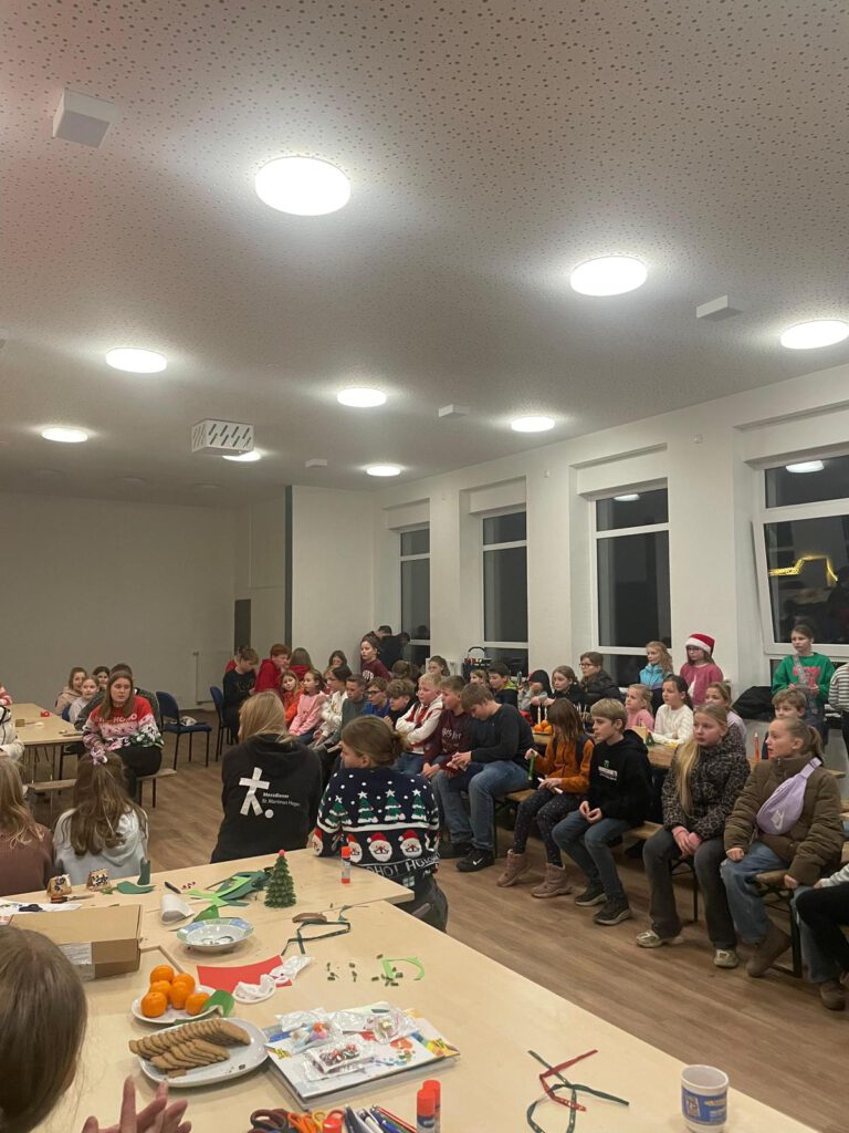 Es wurden Butterkekshäuser und Weihnachtskarten gebastelt, Fenster weihnachtlich bemalt, Nagelbilder und Pfeifenputzertannenbäume gestaltet, mit Makramee, Kerzen und Bügelperlen gearbeitet. Für die Extraportion Weihnachtsstimmung gab es auch heißen Kakao, weihnachtliche Snacks und ein großes Weihnachtsquiz.