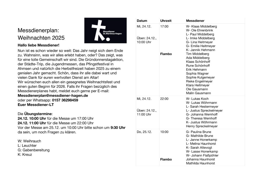 Messdienerpläne